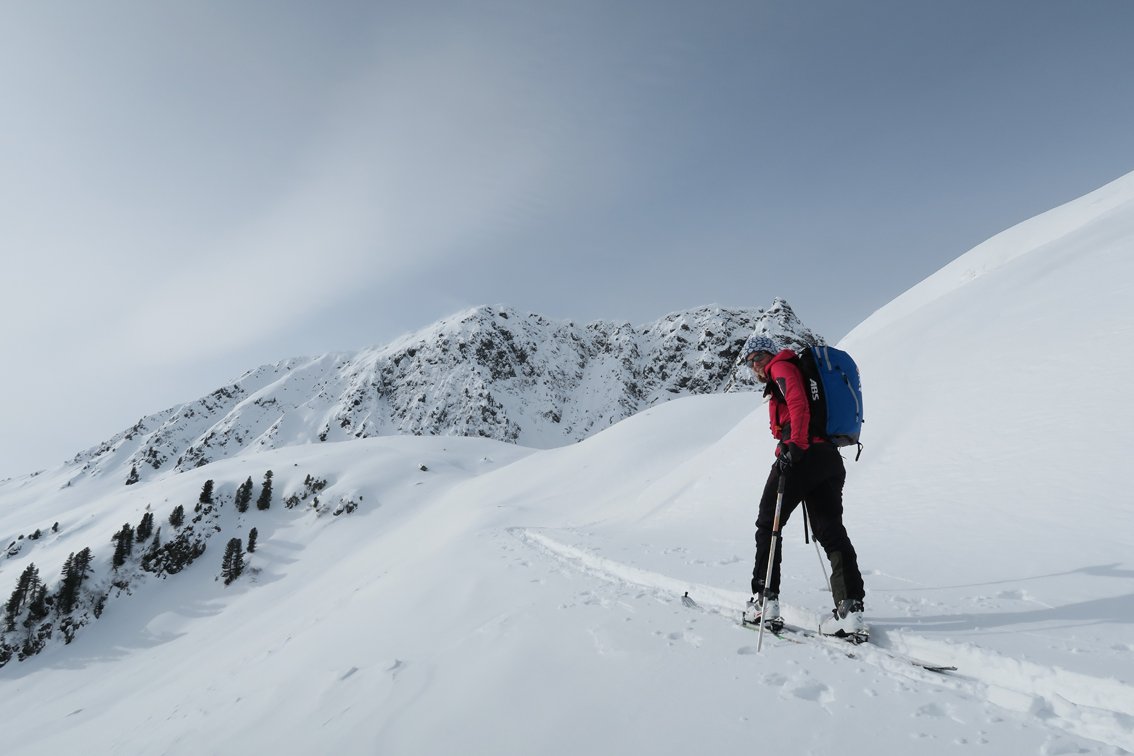 Beim Aufstieg zum Torkopf ist nur der Gipfelhang und der Hang vor der Gruberlacke steil, die Nordabfahrt braucht aber sehr sichere Verhältnisse!