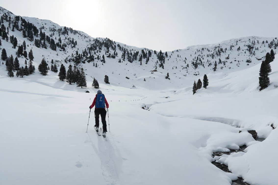 Der Torkopf im hinteren Luegergraben ist ein selten besuchtes Tourenziel, da man recht lange im Tal zusteigen muss. Der Vorteil liegt aber auf der Hand, es sind nur wenig Skitourengeher unterwegs. Wer bei sicheren Schneeverhältnissen kommt, kann die rassige Nordabfahrt ins Auge fassen. Die Crux ist eine steile Passage in der Rinne (eine kurze Eisstufe muss umfahren werden). Wer dann noch zum Mareitkopf aufsteigt und dort die Nordflanke abfährt, hat das Gelände perfekt ausgenützt - Pulvergenuss pur.