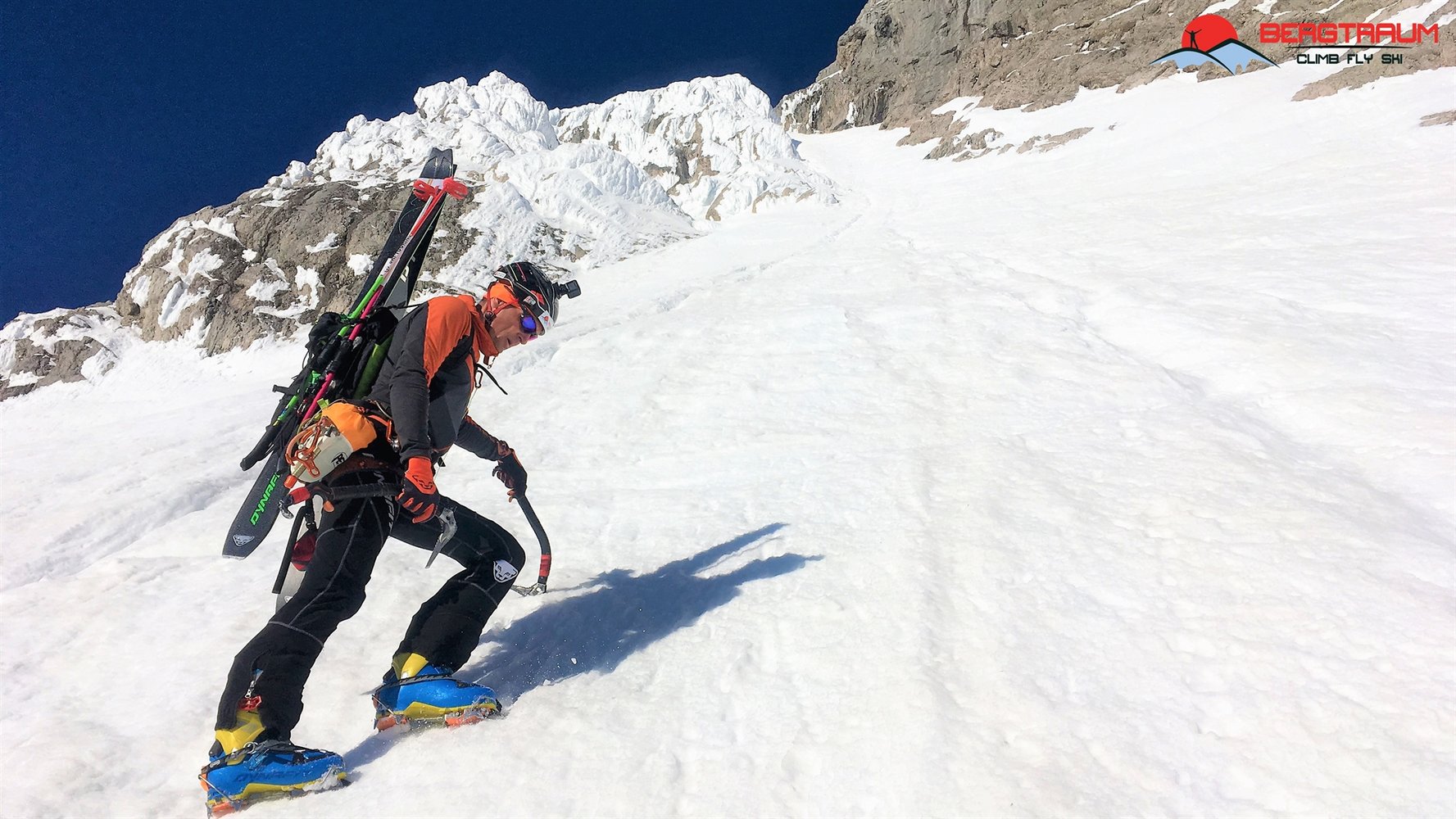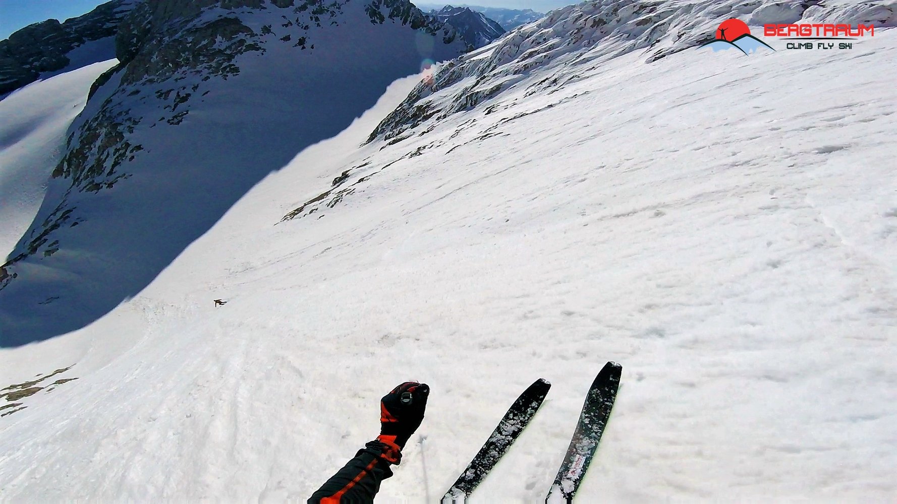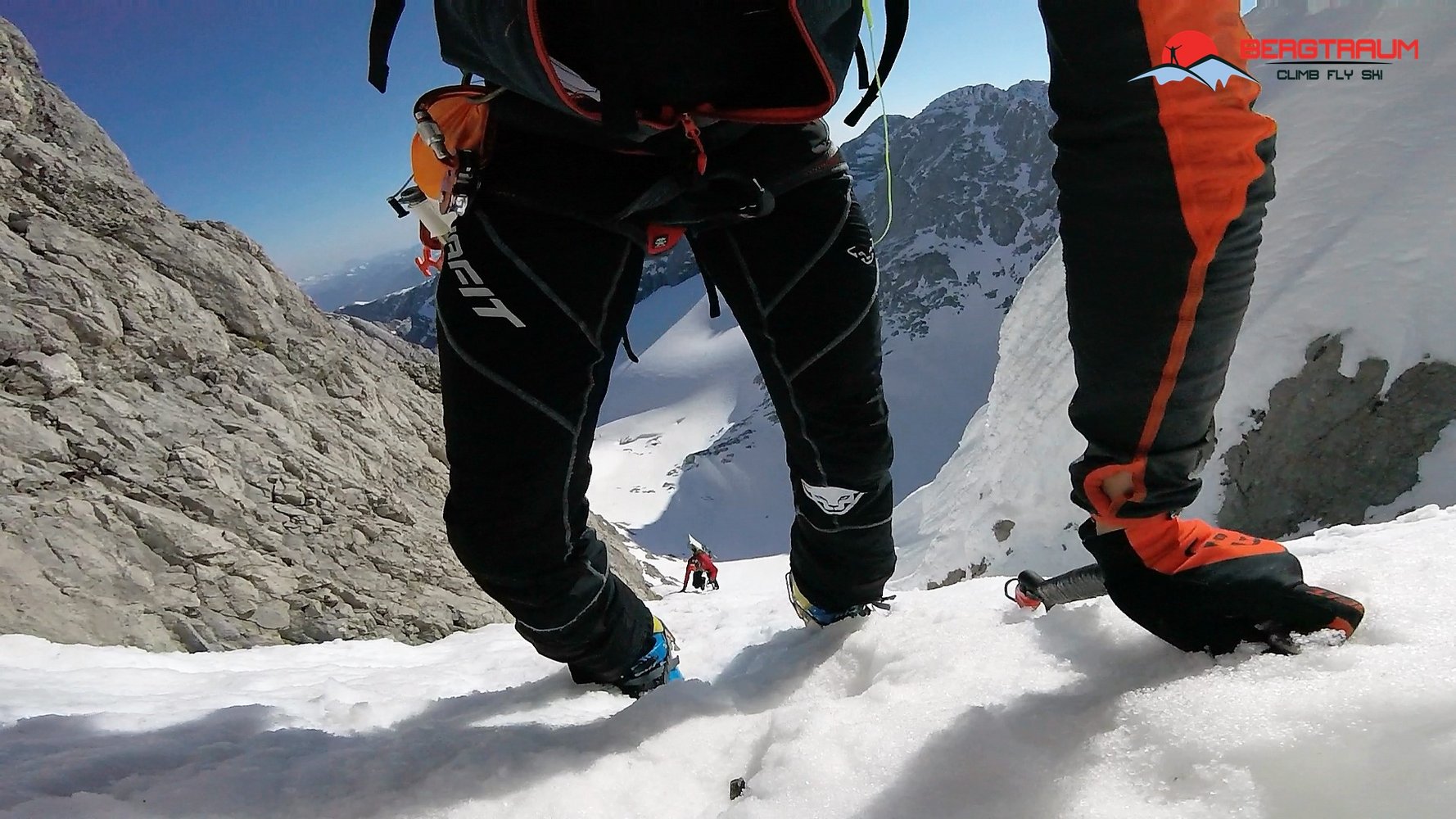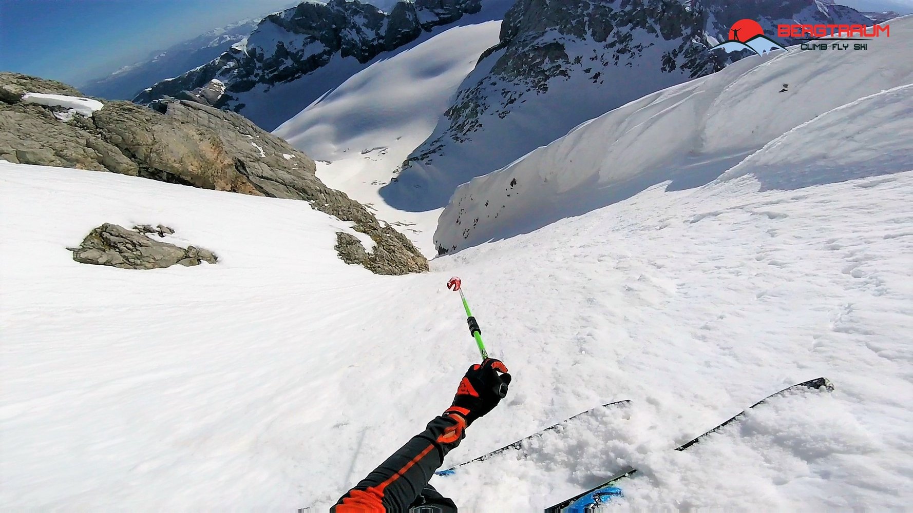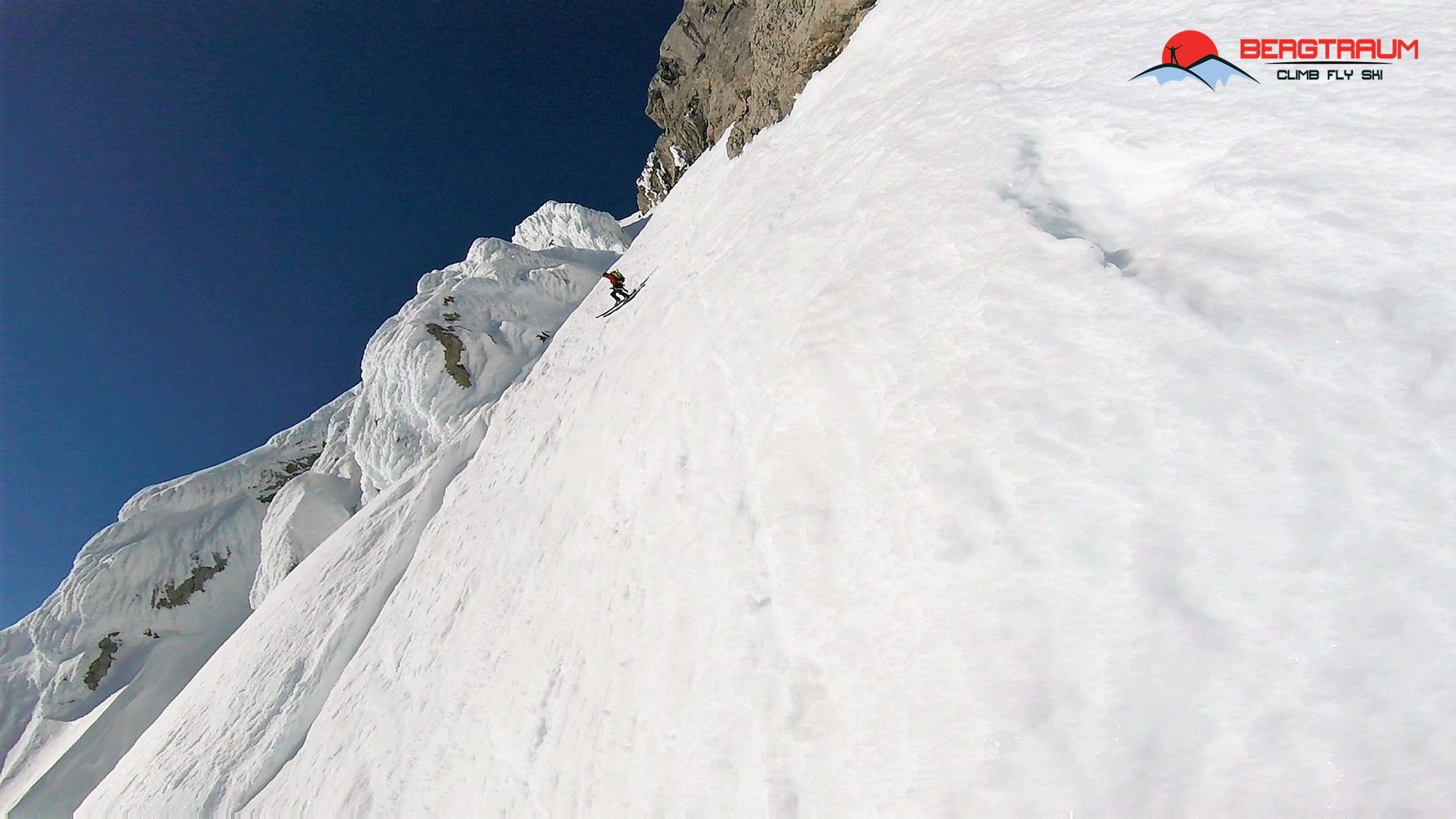 Eine der steilsten Abfahrten im Dachsteinmassiv (55°) im Bereich des Gosaugletschers (300 HM). Besonders lohnend in Verbindung mit einer anschließenden Besteigung des Hohen Dachteins ( 2.996 m).