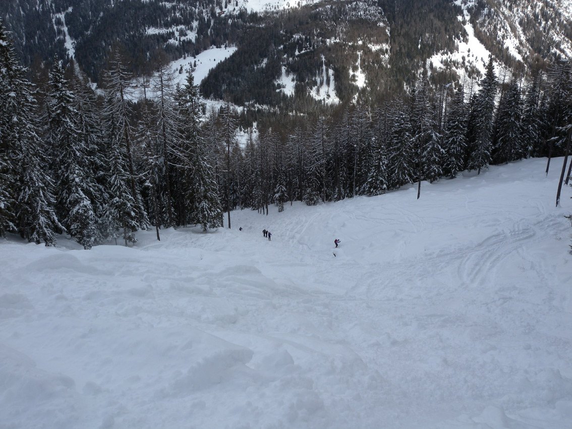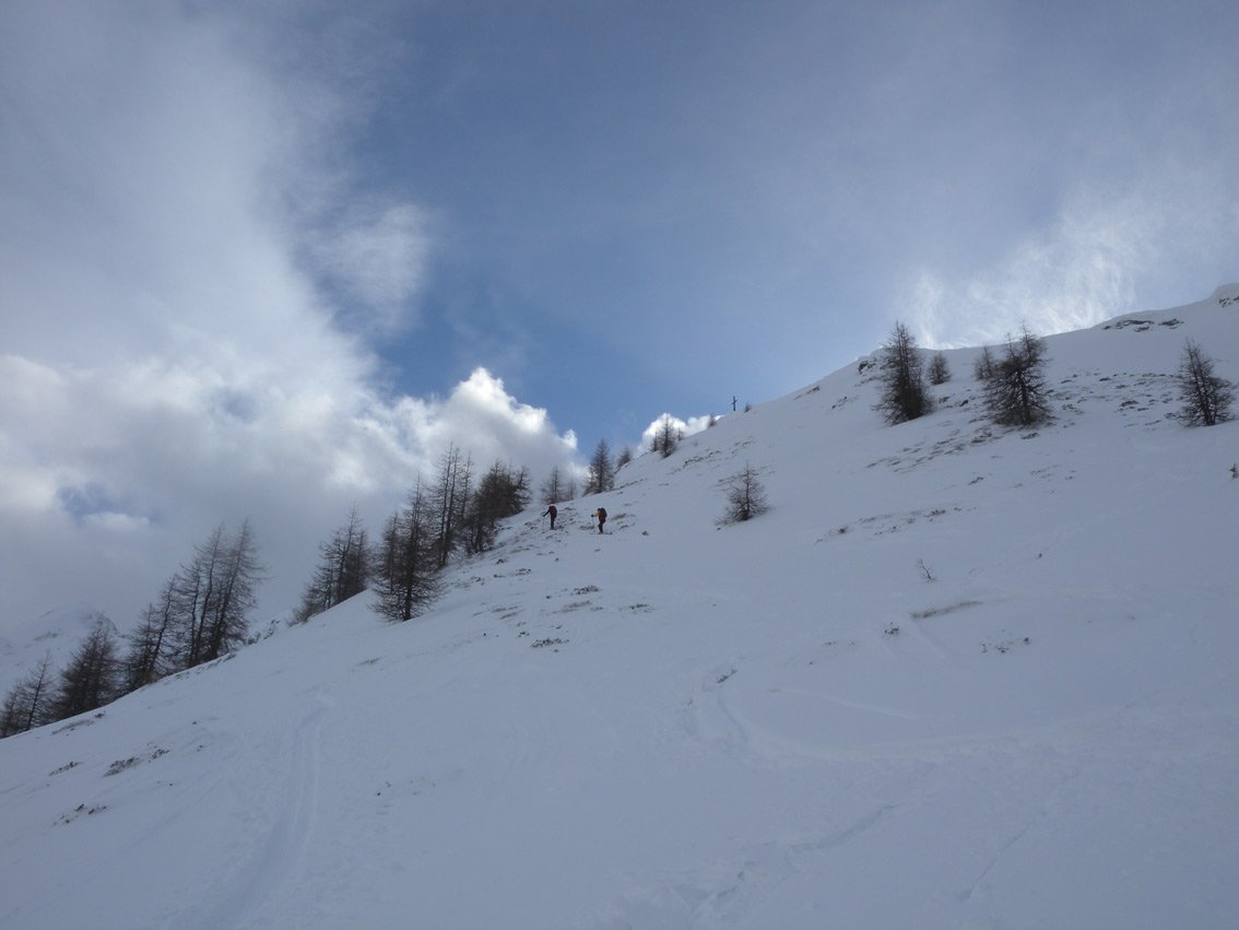Bei unsicheren Verhältnissen empfiehlt sich der Aufstieg zur sog. Leiten. Von der großen Freifläche direkt hinauf – man geht im Wald fast bis zum Gipfel.