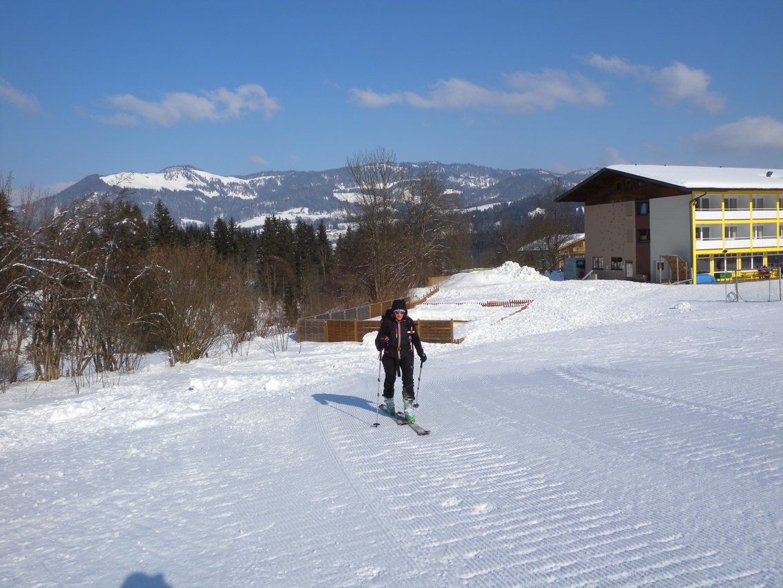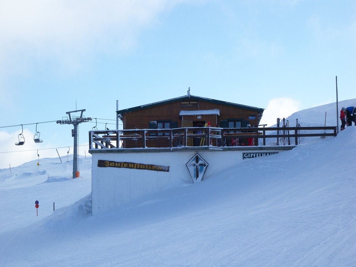Entlang der Piste - immer schön am Rand gehen - aufwärts zur Bergstation der Gondelbahn, bis dorthin tlw. recht steil. Dann entlang der flachen Piste hinauf zum Gipfelhaus. Dahinter bei der kleinen Bergrettungshütte rechts auf den Kamm und auf diesem in wenigen Minuten zum höchsten Punkt.