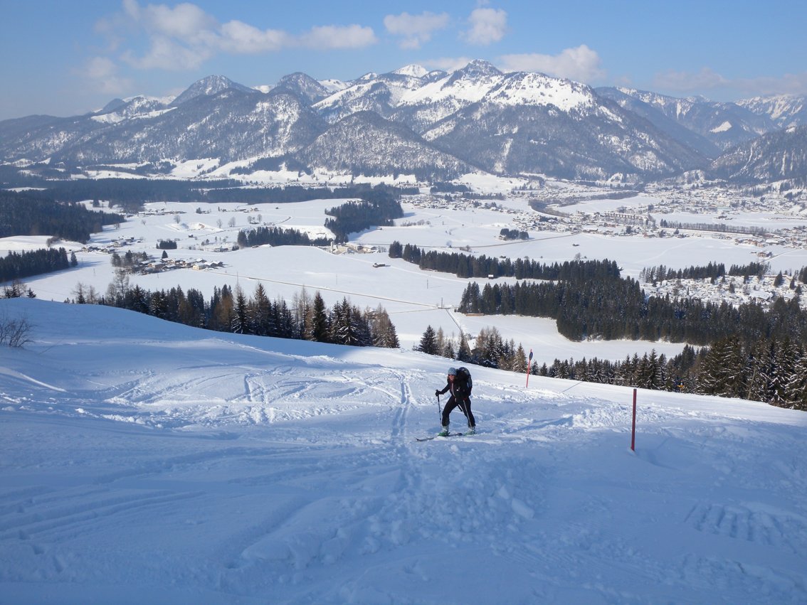 Zweigeteilte Skitour auf das markante Unterberghorn bei Kössen. Unten geht es tlw. recht steil auf der Skipiste aufwärts, danach nur kurz auf einem breiten Grat zum Gipfel. Die Tour ist dank der Piste relativ lawinensicher, im Zweifel verzichtet man oben auf den kurzen Grat und beendet die Tour im Gipfelhaus :-)