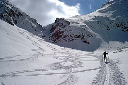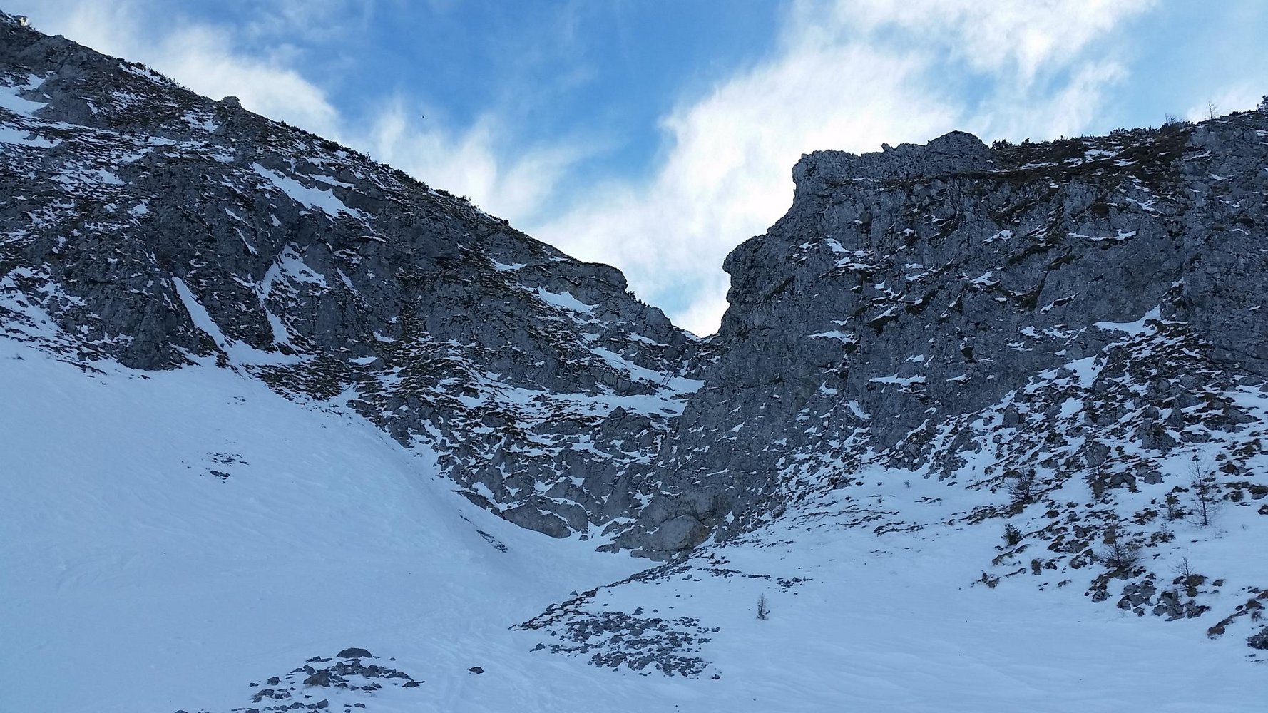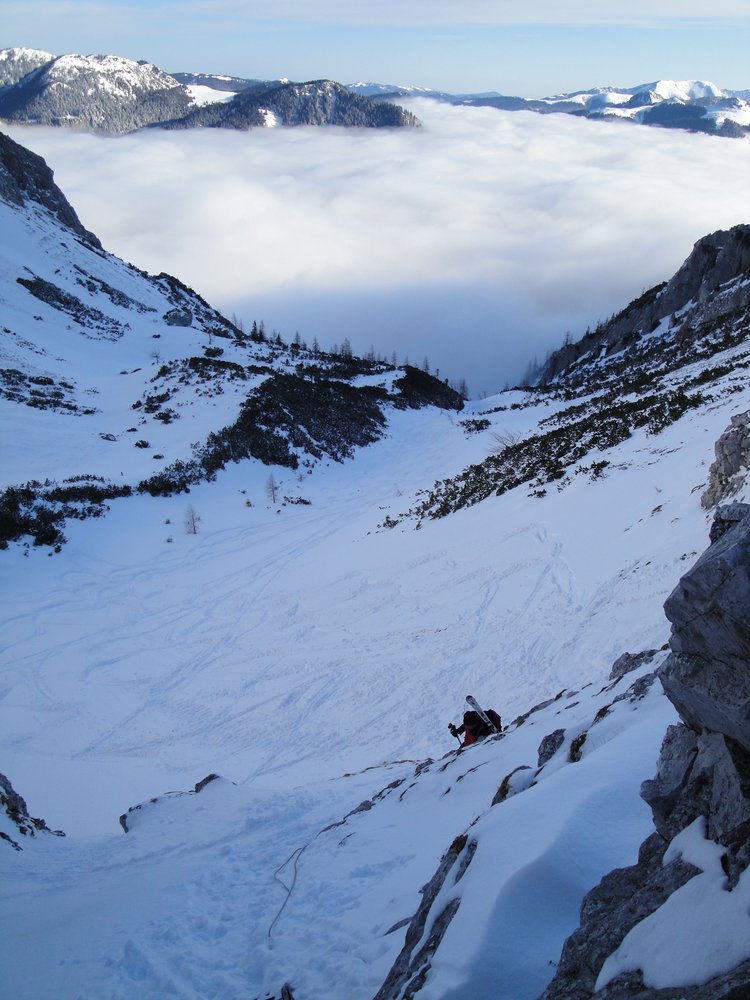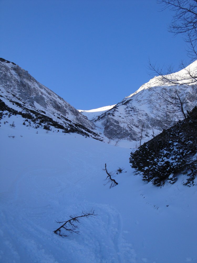 Nach der Steilstufe ist auf der linken und rechten Grabenflanke auf Lawinen zu achten!!!!