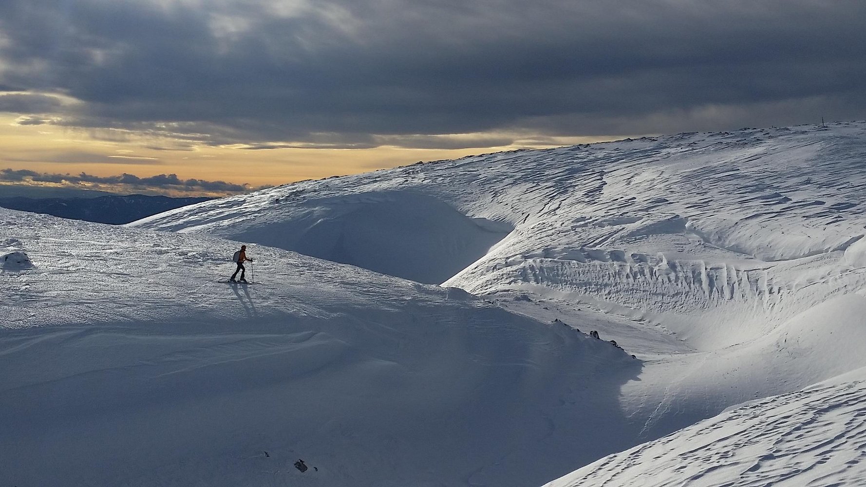 Vorsicht auf Lawinen vor der Unterbrechungsstelle. Steilwandkönner können die Wildkam Ostflanke bis unter Unterbrecherstelle abfahren.