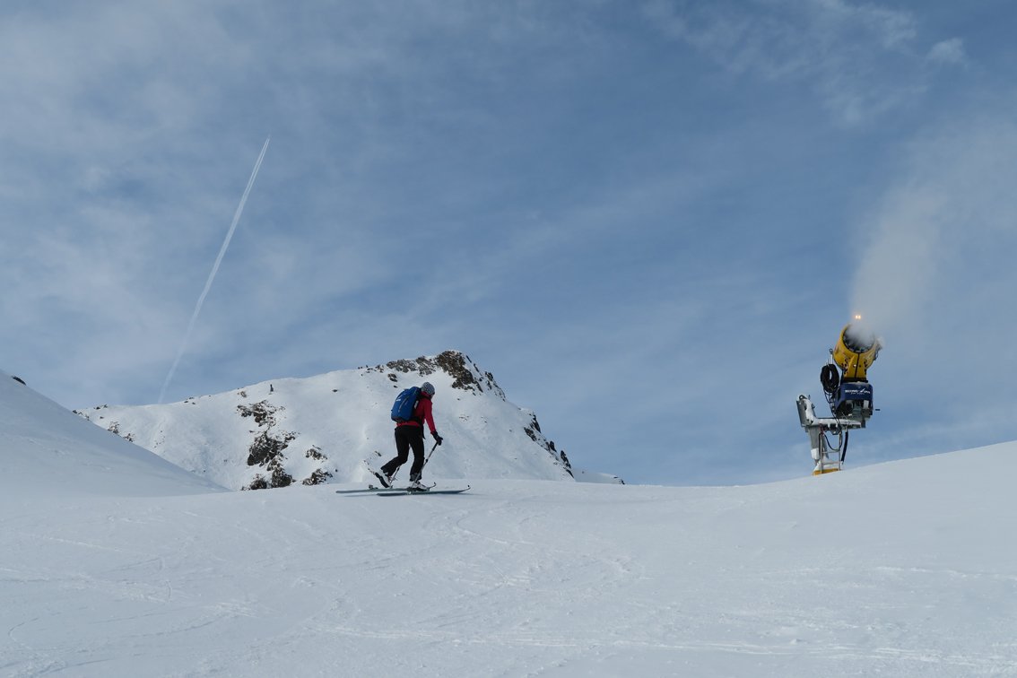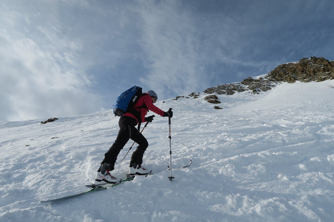 Dank der beschneiten Piste ist der Vorderer Grieskogel eine schöne und steile Alternative zum Pirchkogel. Manchmal liegt auf dem Gipfelhang sogar mehr Schnee als beim um ca. 150 m höheren Nachbarn. Die Tour ist bis auf den Gipfelhang einfach, am Ende führt ein breiter Grat zum höchsten Punkt.