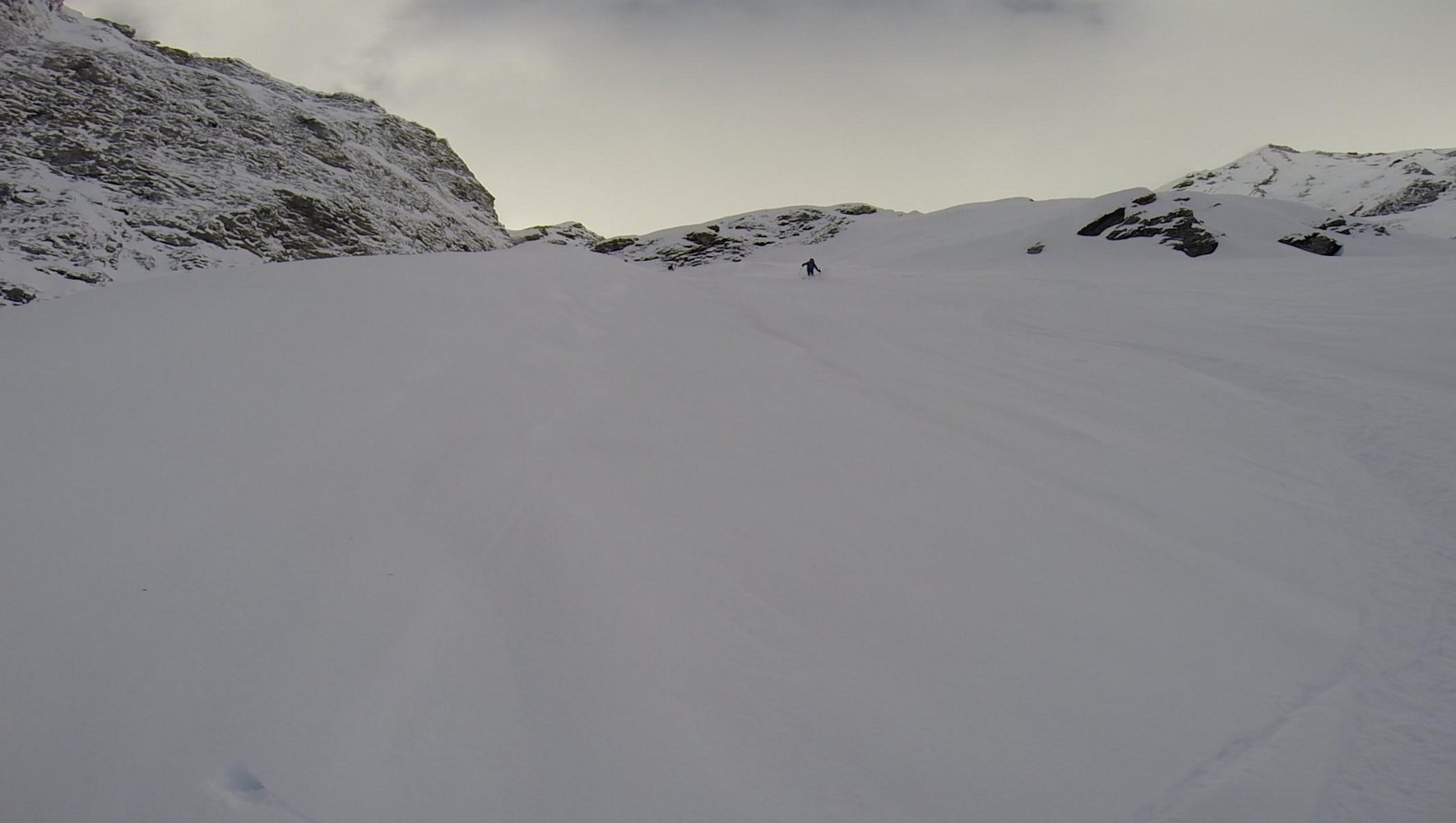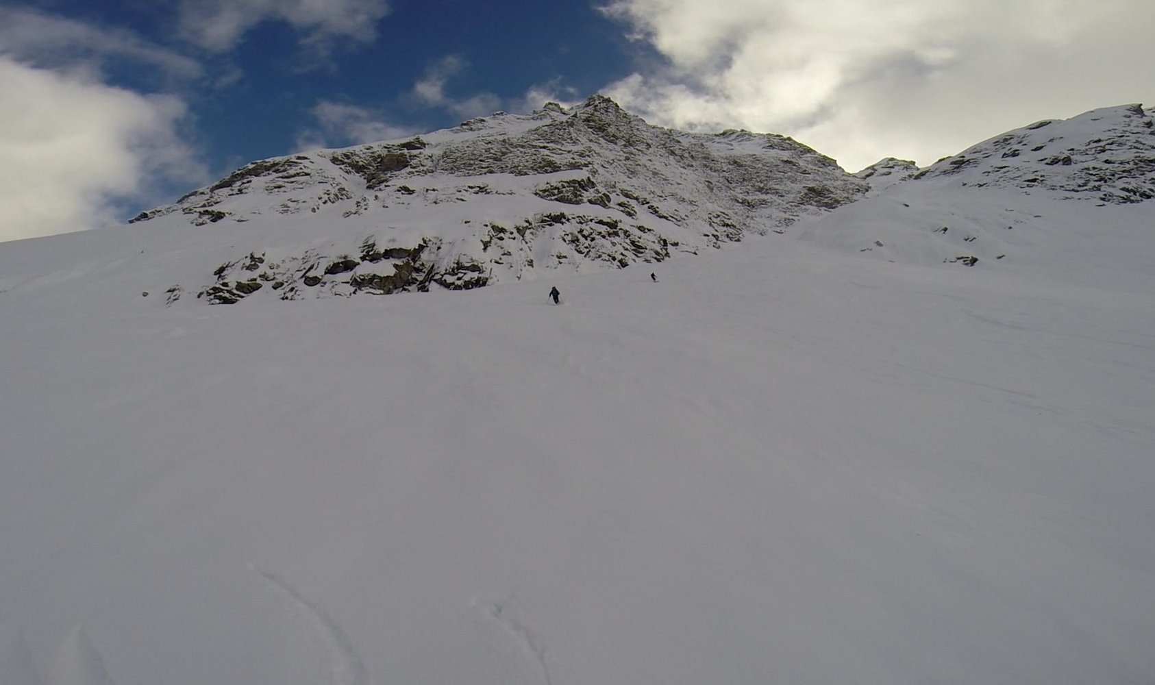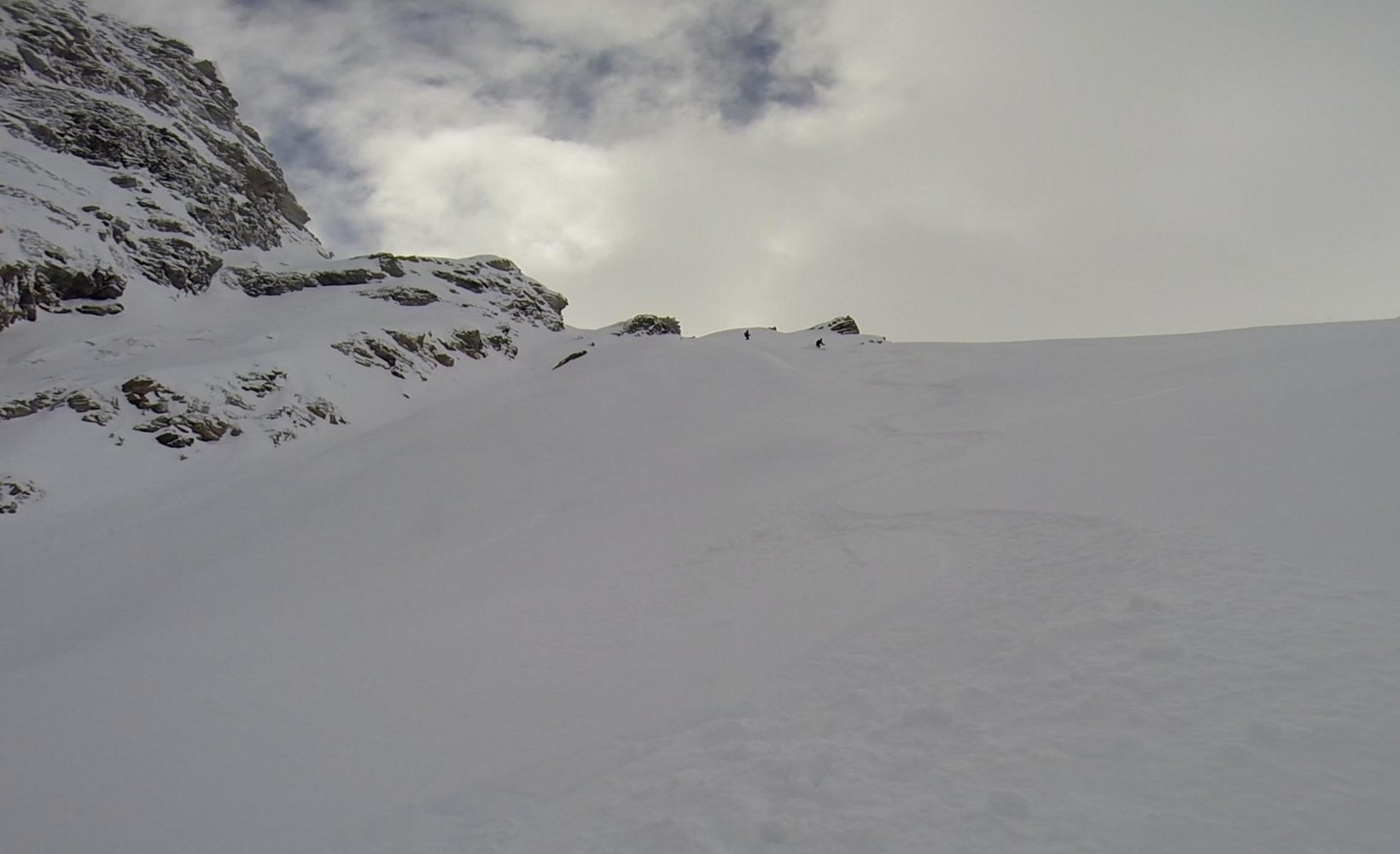 Die Skitour über die mittlere Rinne in die Scharte zwischen Wandspitze und Reitereck wird, zu unrecht, nur sehr selten begangen. Nach der Forststraße, taucht man in ein alpines Ambiente ein, das durch den dunklen Fels, der die Rinne umgibt, mystisch anmutet. Die etwa 600 Höhenmeter lange Rinne wird nach oben hin enger und hat oben um die 37 Grad. Je nach Verhältnissen kann man auch die etwas rechts gelegene Rinne fahren. Sollte die Rinne wegen Lawinen aus der Wand schlechten Schnee haben, kann man sehr gut auf den rechts begrenzenden Rücken fahren oder als Alternative die benachbarte Seemannwand ansteuern.
