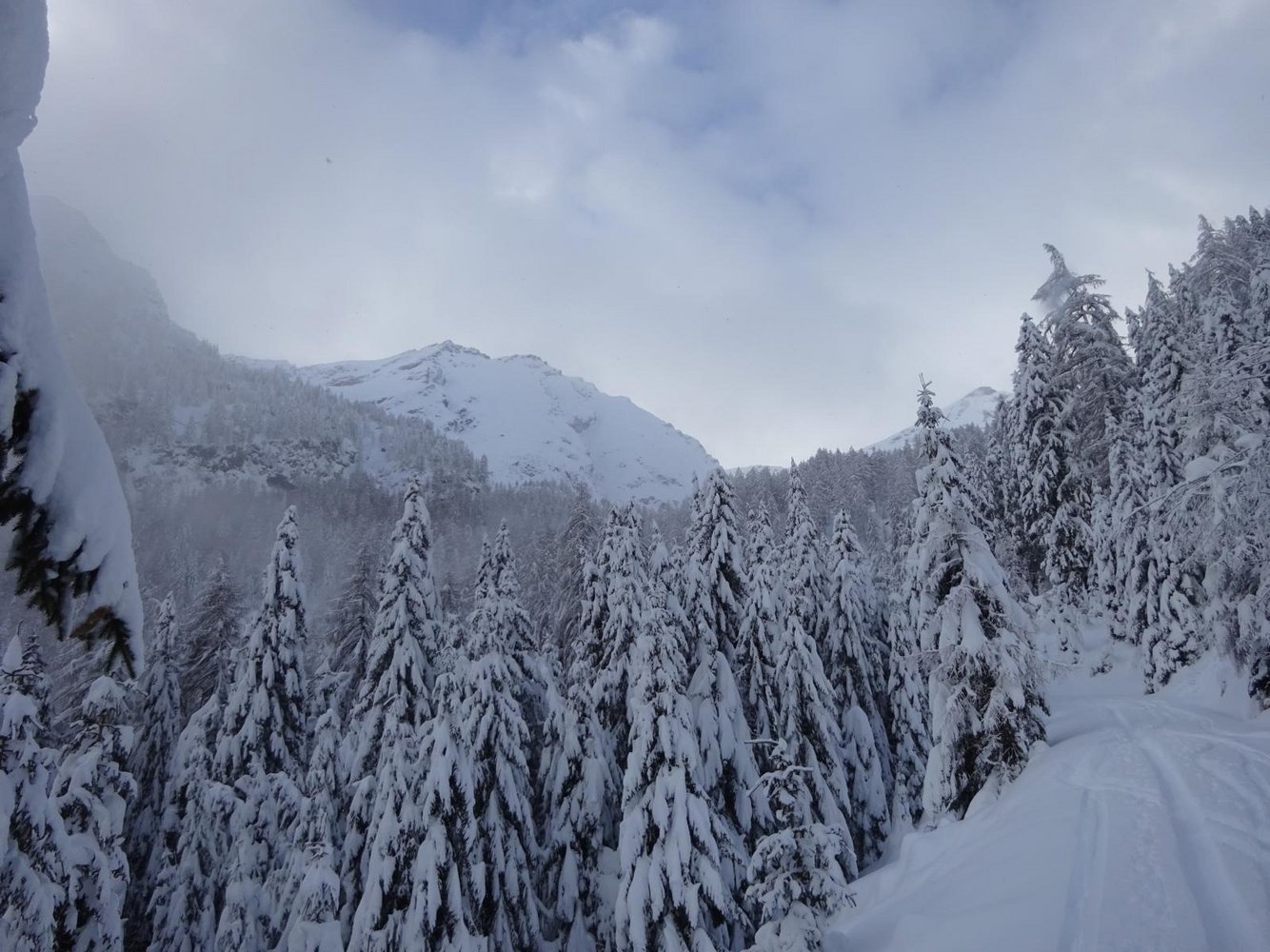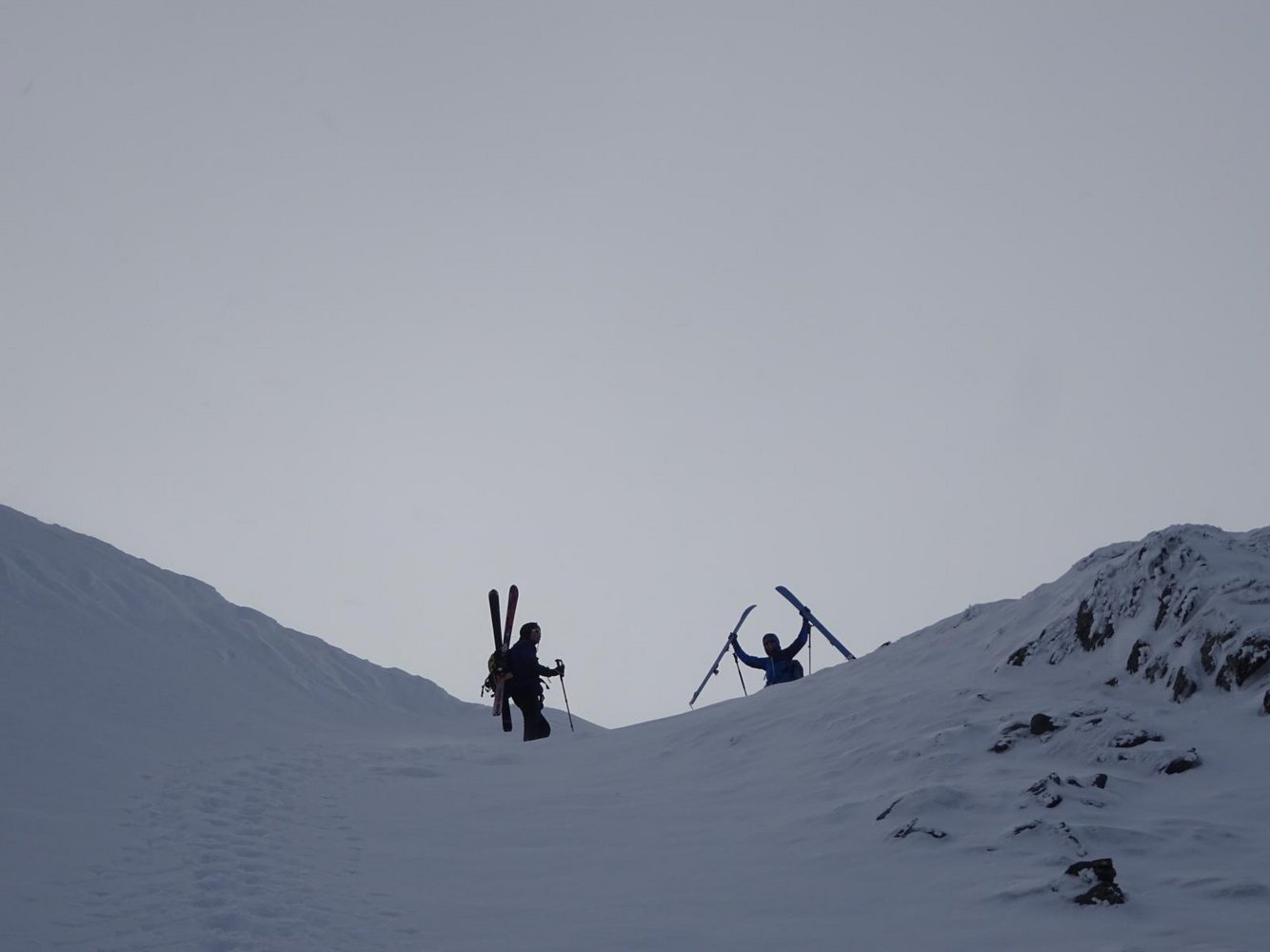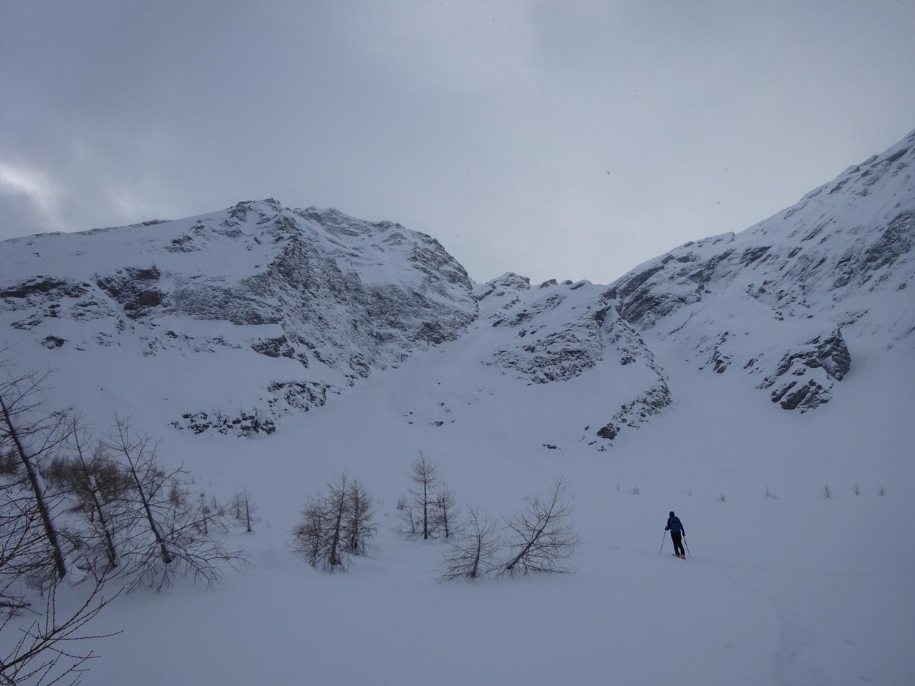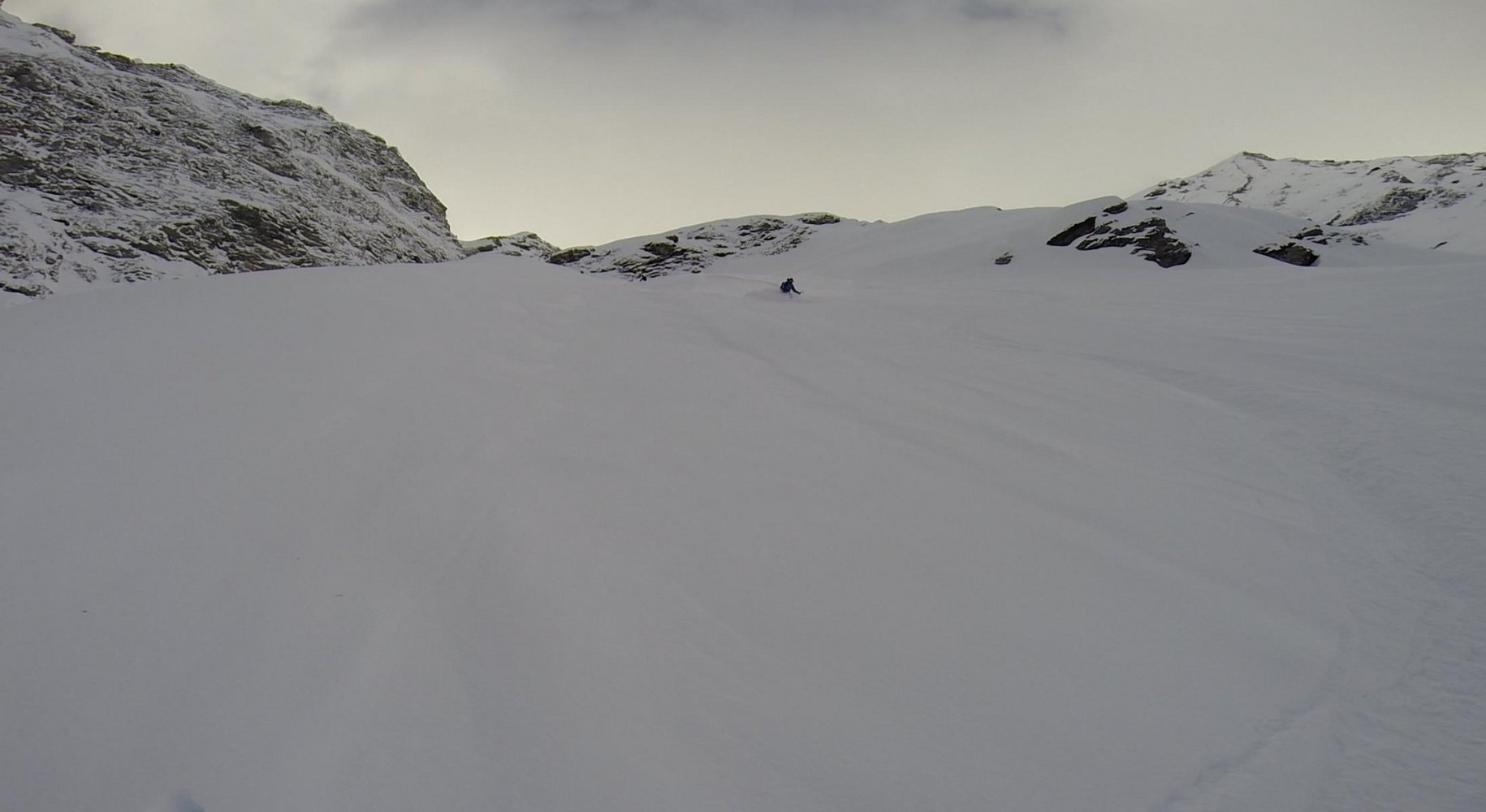 Die Skitour über die mittlere Rinne in die Scharte zwischen Wandspitze und Reitereck wird, zu unrecht, nur sehr selten begangen. Nach der Forststraße, taucht man in ein alpines Ambiente ein, das durch den dunklen Fels, der die Rinne umgibt, mystisch anmutet. Die etwa 600 Höhenmeter lange Rinne wird nach oben hin enger und hat oben um die 37 Grad. Je nach Verhältnissen kann man auch die etwas rechts gelegene Rinne fahren. Sollte die Rinne wegen Lawinen aus der Wand schlechten Schnee haben, kann man sehr gut auf den rechts begrenzenden Rücken fahren oder als Alternative die benachbarte Seemannwand ansteuern.