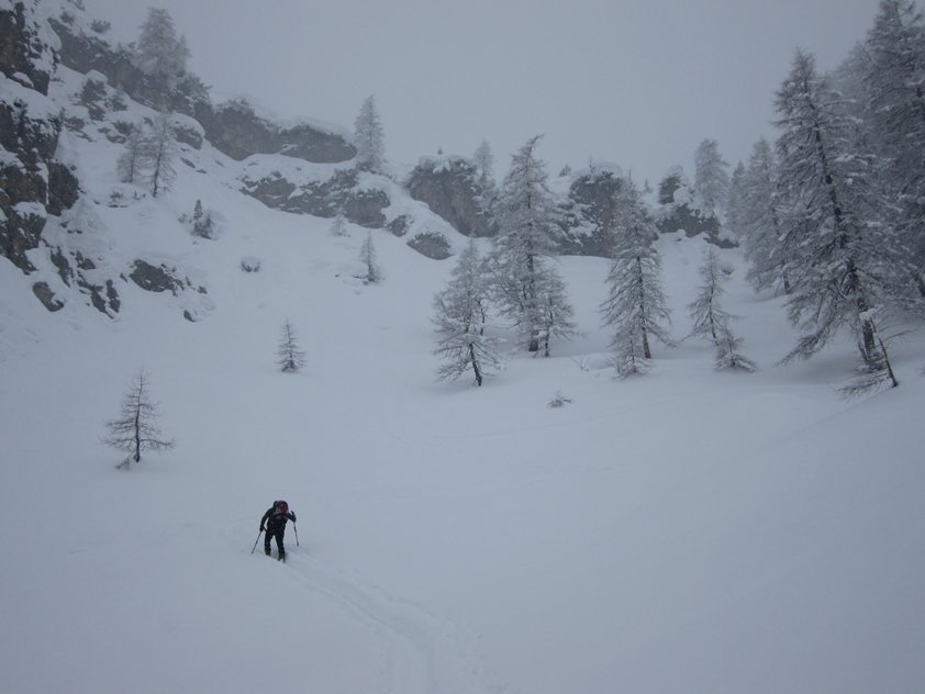 Wegen des steilen Kares oberhalb der Herrenhäuser, sollte man auf sichere Schneeverhältnisse achten.