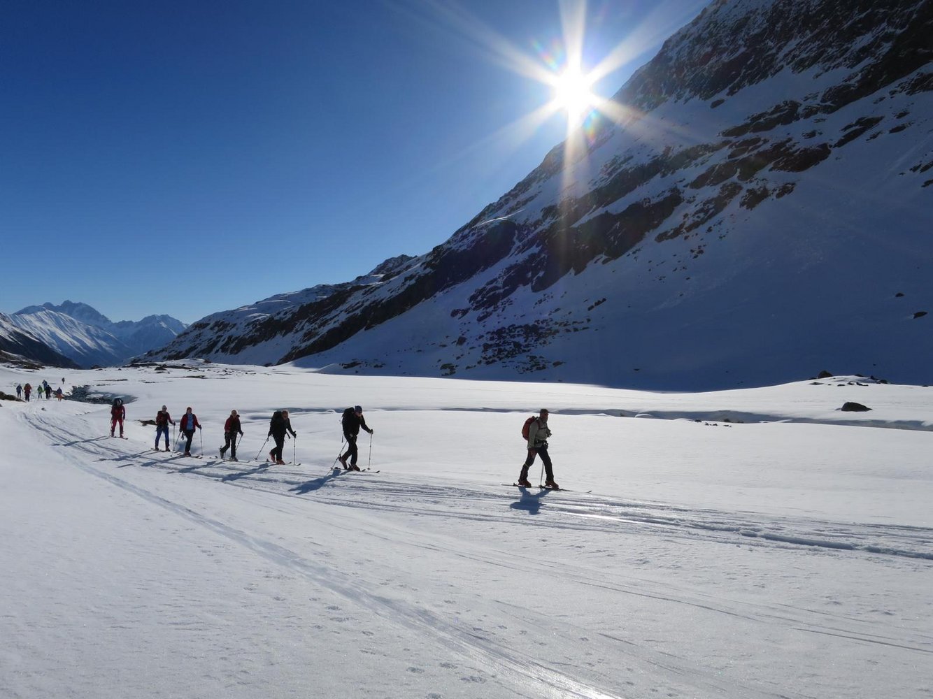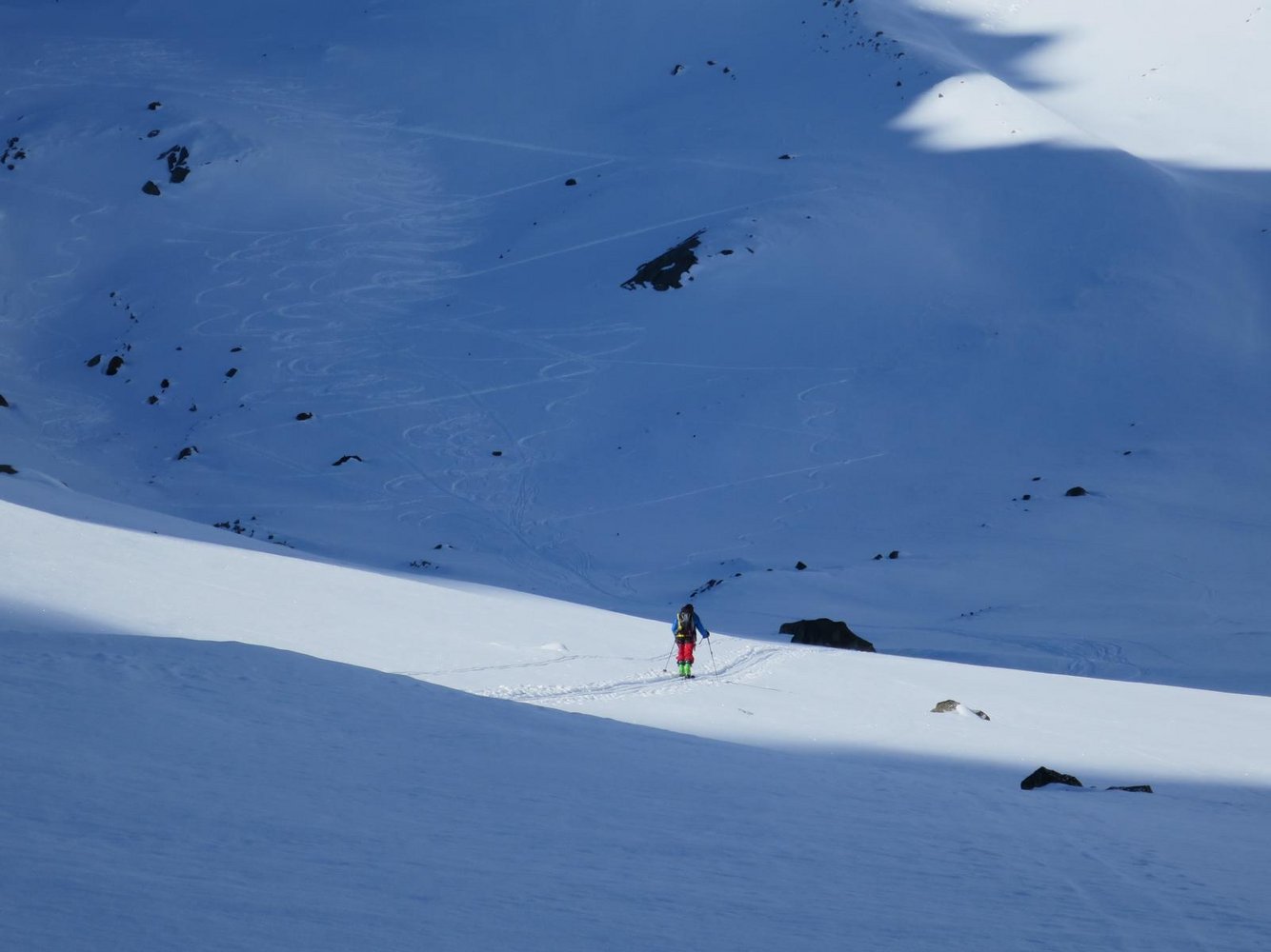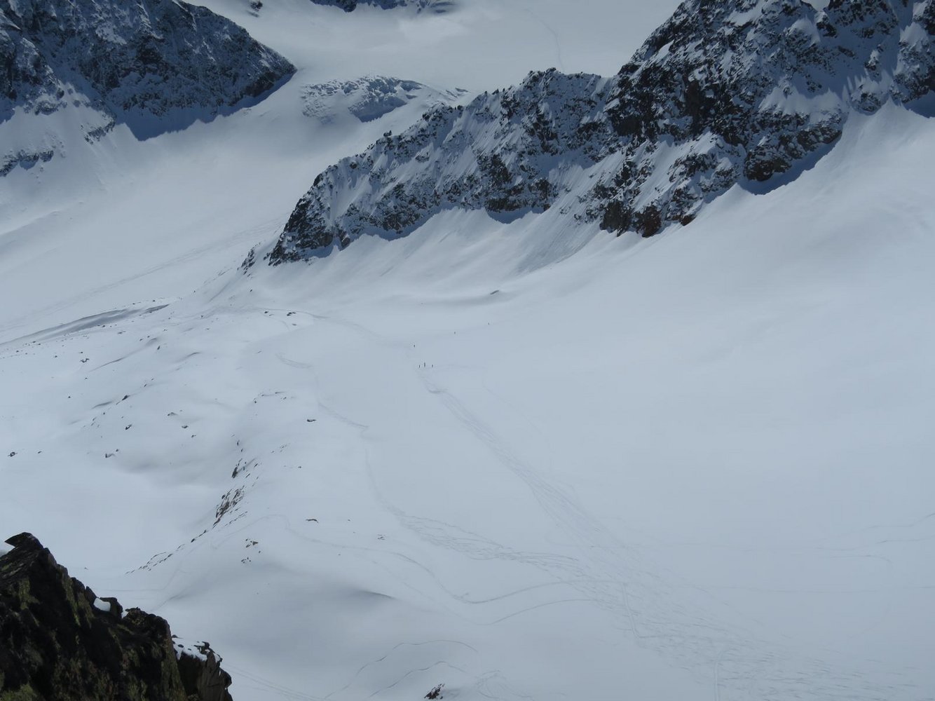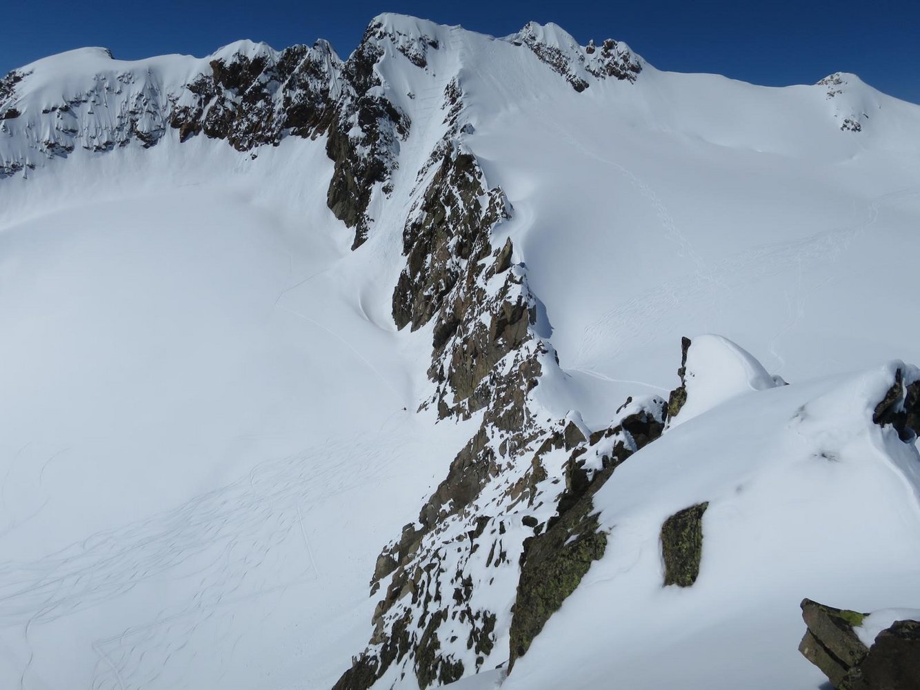 Längster Anstieg auf diesen sehr beliebten Skitouren-Gipfel im Skitourengebiet Franz Senn Hütte, dafür spaltenärmer als der Aufstieg über den Berglasferner. Die Crux ist die rund 40 m hohe Steilstufe hinauf zur Turmscharte (Fixseil).