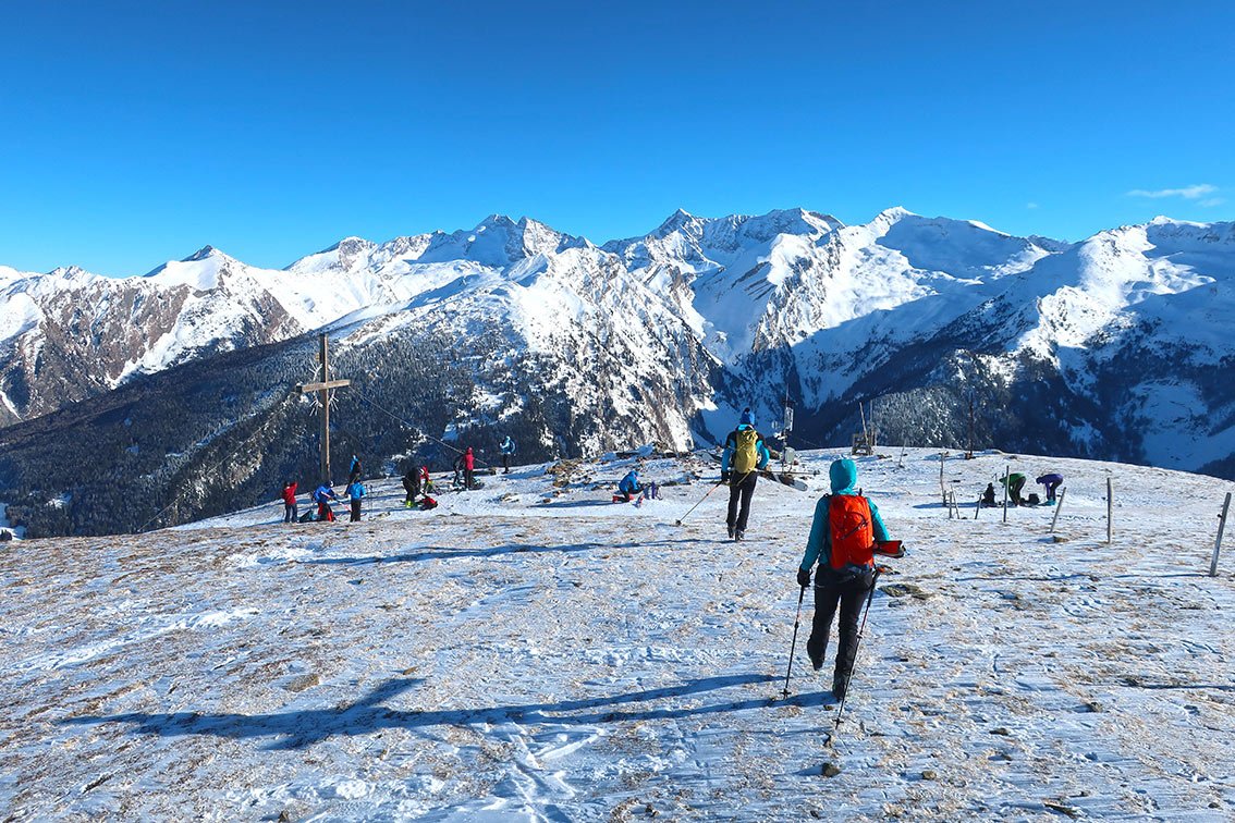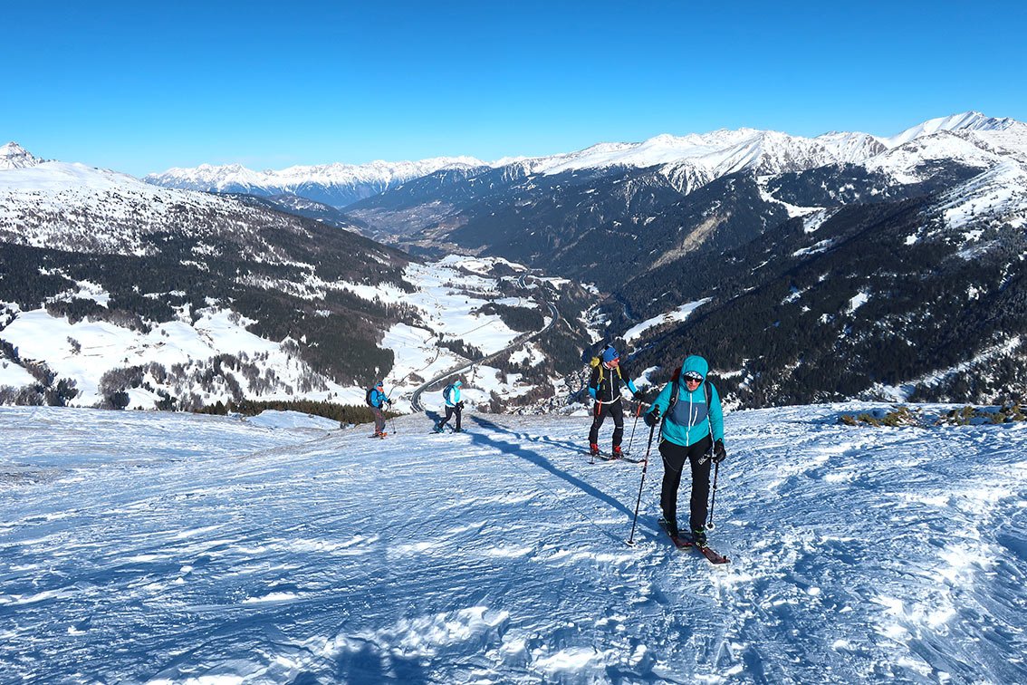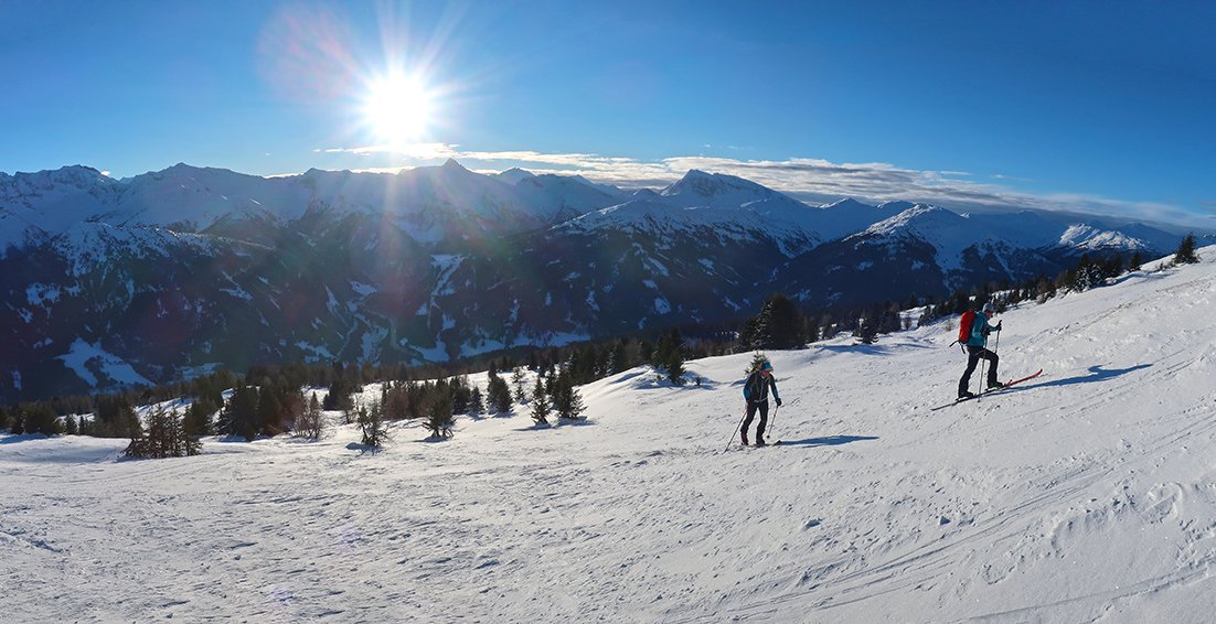 Der Wipptal Express - das ist eine 4-Gipfelrunde an den beliebten, leichten Skitourenbergen nördlich des Brennerpasses. Nösslachjoch (2225 m), Sattelberg (2115 m), Padauner Kogel (2066 m) und Vennspitze (2390 m) werden in dieser Reihenfolge nacheinander bestiegen. Man kann diese vier Gipfel sehr gut miteinander kombinieren, meist bewegt man sich auf den Standard-Anstiegen, nur selten auf eher wenig frequentierten Abschnitten. Die Tour ist vor allem im Hochwinter interessant, wenn man nach großen Neuschneemengen ein paar Tage abwartet, sind meist alle Aufstiege gut gespurt. Diese Express-Runde (ca. 39 km, 3945 Hm) ist wirklich reizvoll und bei frühem Aufbruch auch von sportlichen Skitourengehern im gemäßigten Aufstiegsschritt machbar. Ein ausdauerndes, langes Skiabenteuer, bei dem man immer einen schönen Ausblick auf die fantastische Bergwelt der Brenner-Region hat.