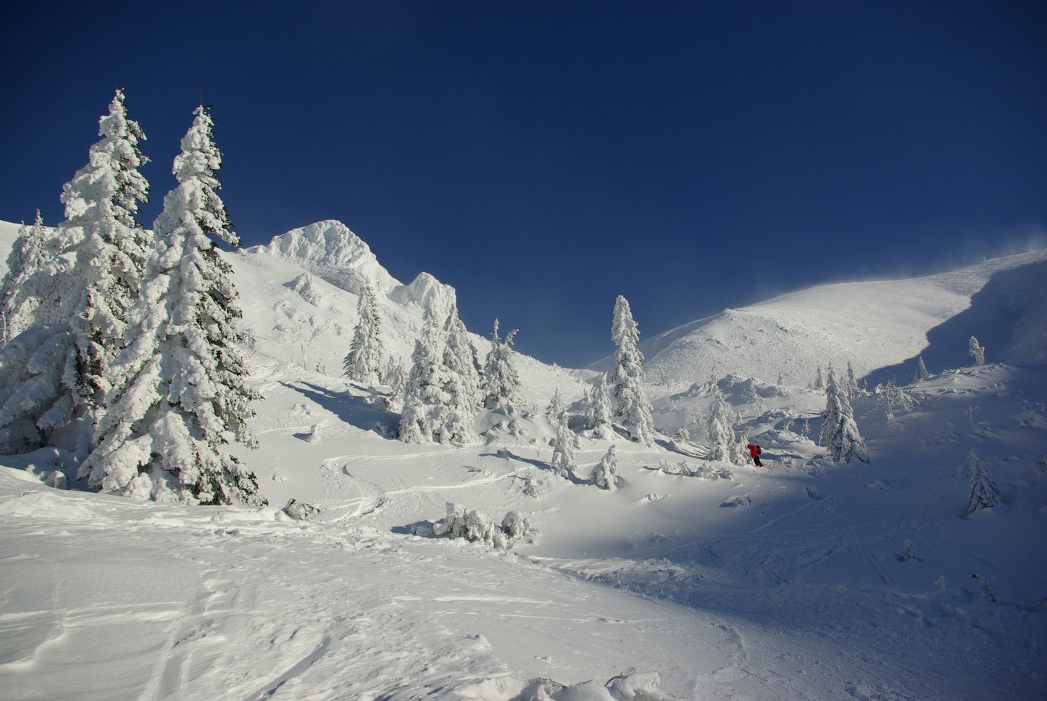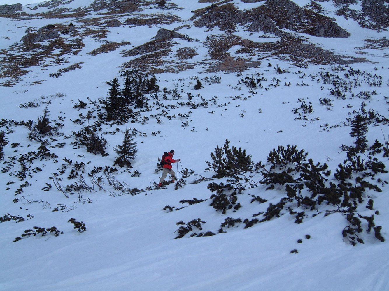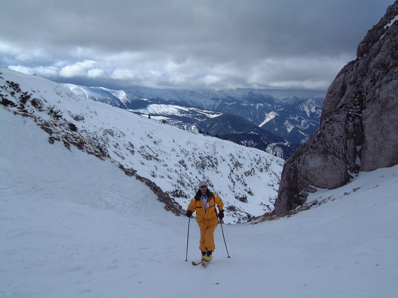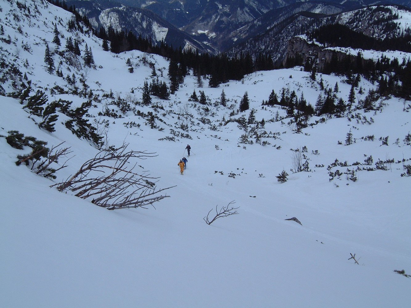 Der absolute Klassiker am Schneeberg, durch den sich an schönen Tagen die Massen drängen. Die Abfahrt durch den Wurzen für erfahrene Skitourengeher auch bei Schlechtwetter (Sturm) möglich, da man den Graben, der von der Fischerhütte aus genau in westlicher Richtung abfällt (zuerst schwach ausgeprägt mit einigen kurzen Stangen) auch leicht findet und der Wind spätestens bei der Krempelhütte vorbei ist. Wer keine Erfahrung hat, sollte bei Schlechtwetter vom Schneeber die Finger lassen!