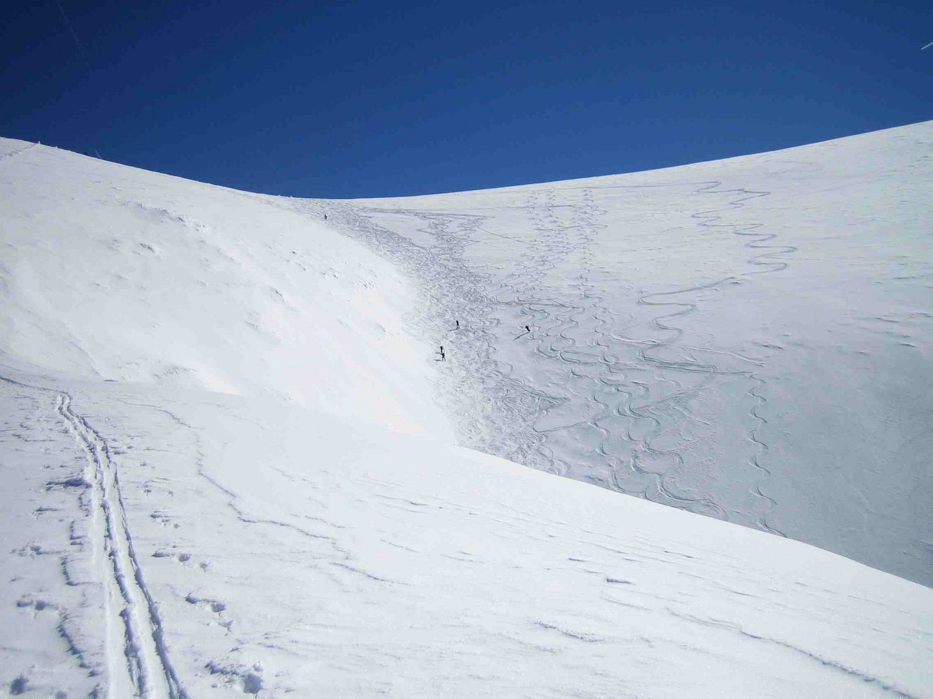 Im Mittelteil bei wenig Schnee oft steinig und oben natürlich regelmäßig verblasen bzw. eisig.