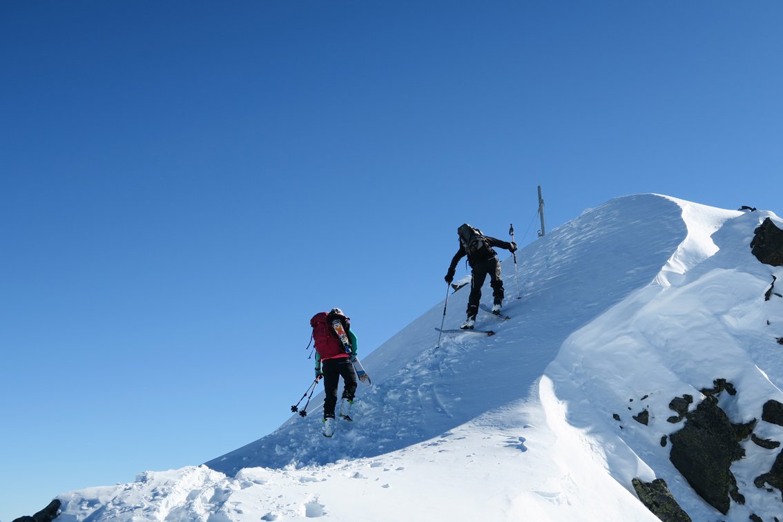 Vom Weiler Haggen (Gasthof Forellenhof) auf breitem Weg in das Kraspestal bis zum Talschluss. Dort links durch die sehr heikle Engstelle (die sog. untere Zwing) in das oben wieder breite Tal. Die Engstelle kann bei wenig Schnee rechts über den Sommerweg umgangen werden. An einer Jagdhütte vorbei, nach dieser dann in eine nach Osten gerichtete Mulde. In der Mulde hinauf und nach rechts (im Aufstiegssinn) durch die „obere Zwing“ wieder Richtung Süden gehen. Leicht ansteigend bis oberhalb des Kraspessees, dann links etwas steiler hinauf auf den Kraspesferner und über den kleinen Gletscher bis auf ca. 2850 m. In einem Rechtsbogen um einen Felssporn in ein Becken und die letzten Meter meist ohne Skier auf den Gipfel.