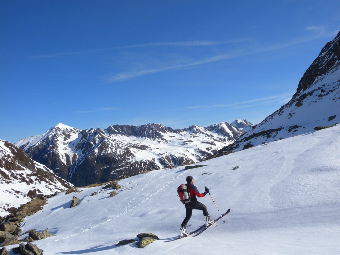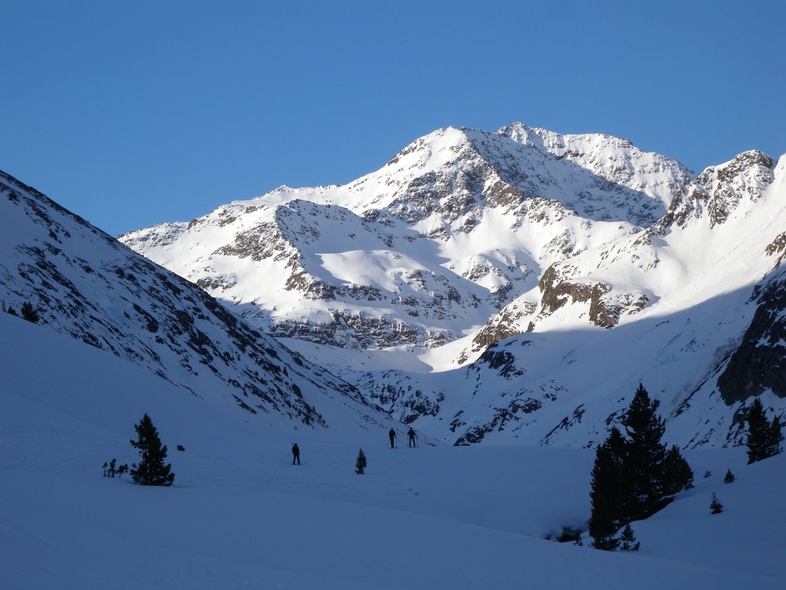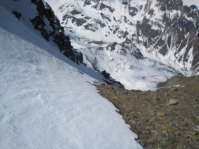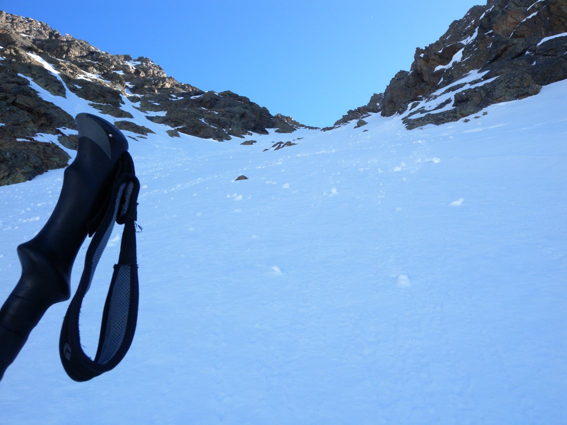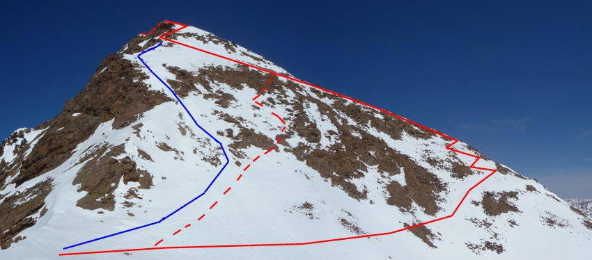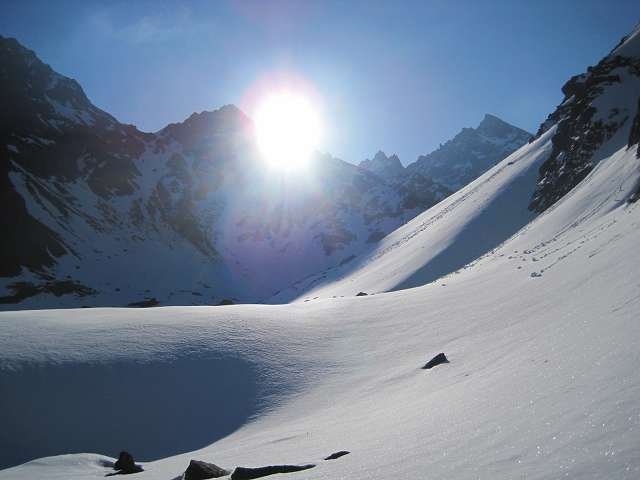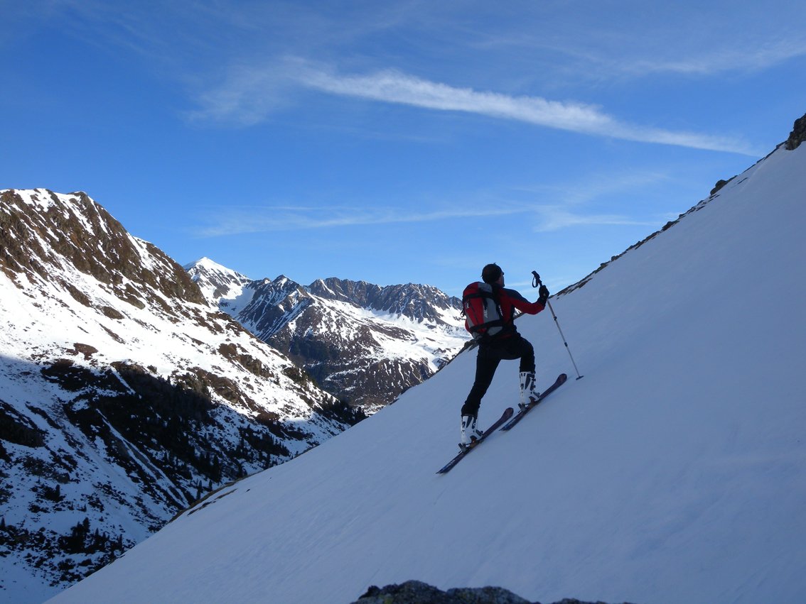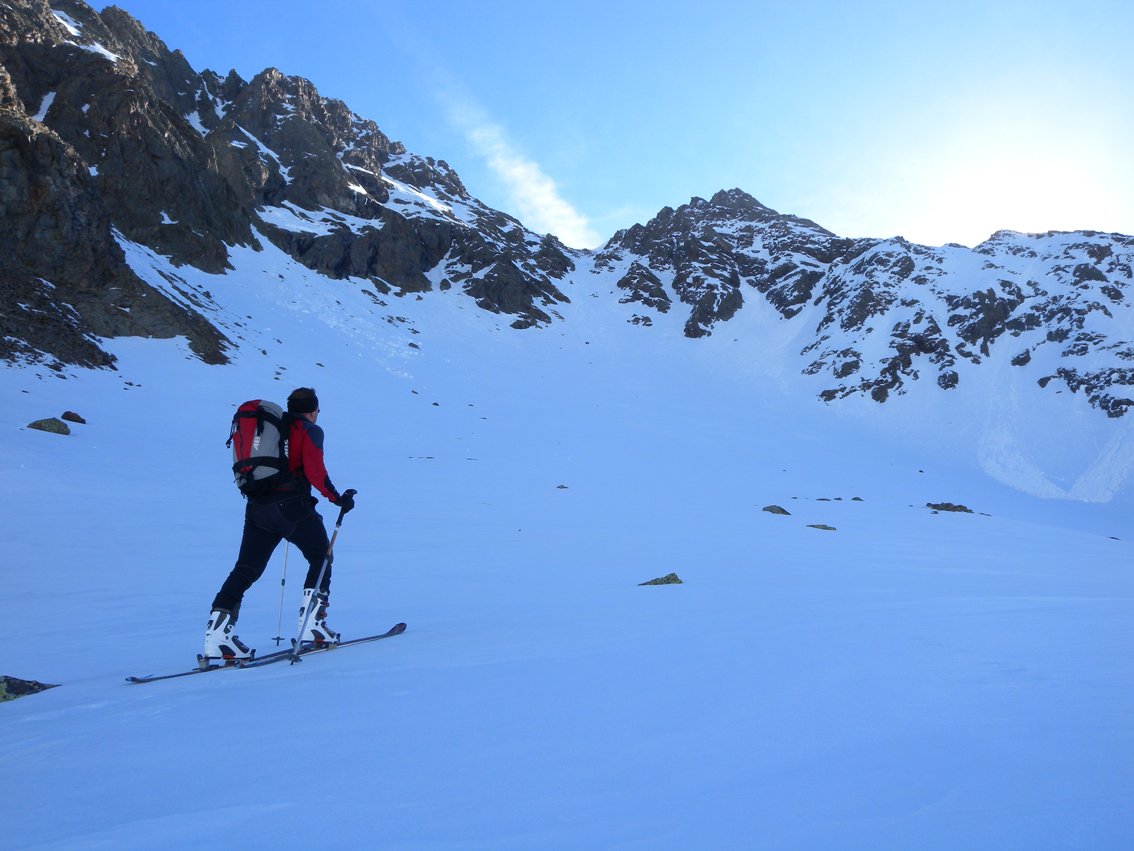 Sehr steile Hänge auf dem gesamten Anstieg, d.h. hohe Lawinengefahr - nur bei sicheren Schneeverhältnissen machbar.